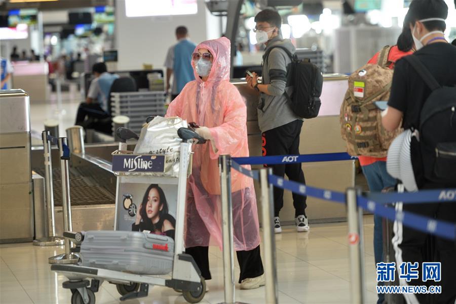 3月16日,一名身披雨衣的乘客在泰国曼谷素万那普国际机场等待值机。 泰国公共卫生部16日消息称,泰国16日新增新冠确诊病例33例,累计确诊147例。 新华社发(拉亨摄)