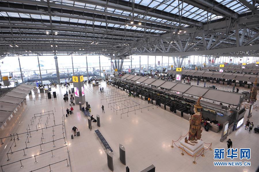 这是3月16日拍摄的泰国曼谷素万那普国际机场出发大厅。 泰国公共卫生部16日消息称,泰国16日新增新冠确诊病例33例,累计确诊147例。 新华社发(拉亨摄)