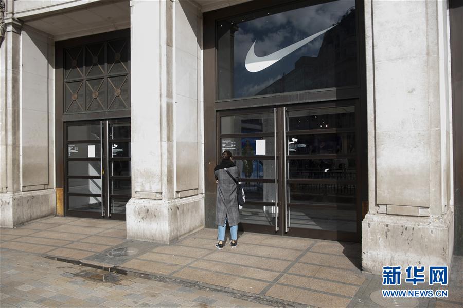 3月16日,在英国伦敦,一名女子阅读一家耐克商店门口贴出的暂停营业告示。 随着英国新冠肺炎疫情发展,英国政府呼吁人们尽量避免不必要的社交接触和不必要的出行。 新华社发(雷伊·唐摄)