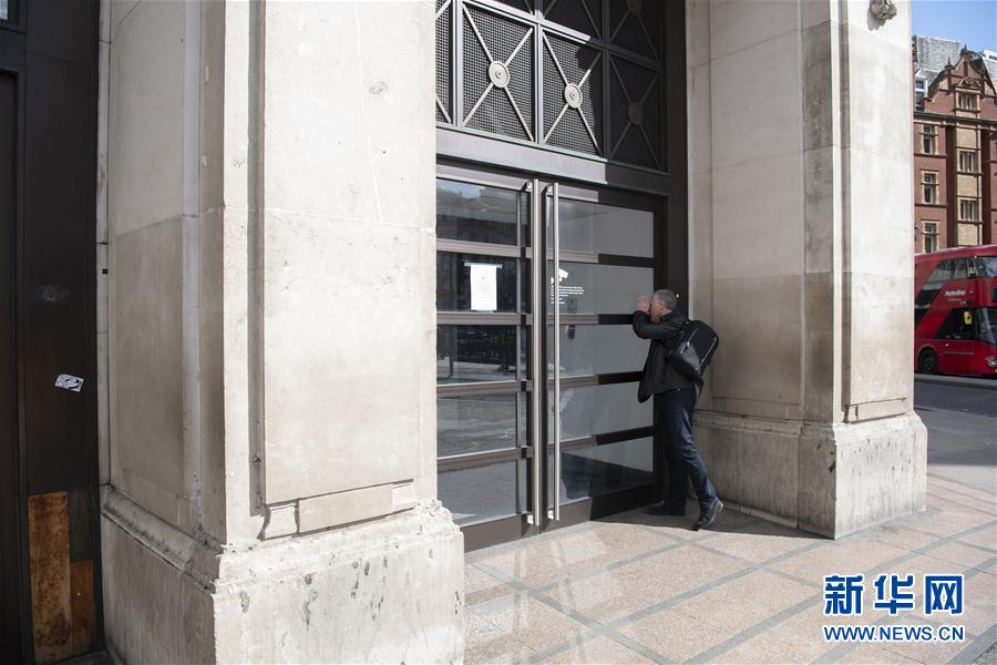 3月16日,在英国伦敦,一名男子向一家暂停营业的耐克商店内张望。 随着英国新冠肺炎疫情发展,英国政府呼吁人们尽量避免不必要的社交接触和不必要的出行。 新华社发(雷伊·唐摄)