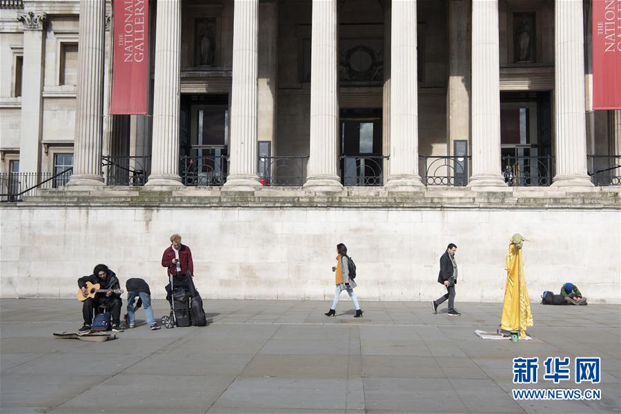3月16日,在英国伦敦,人们经过特拉法加广场。 综合英国卫生当局16日发布的数字,英国新冠肺炎确诊病例数已达1543例。随着数字攀升,政府开始呼吁人们尽量避免不必要的社交接触及不必要的出行。 新华社发(雷伊·唐摄)