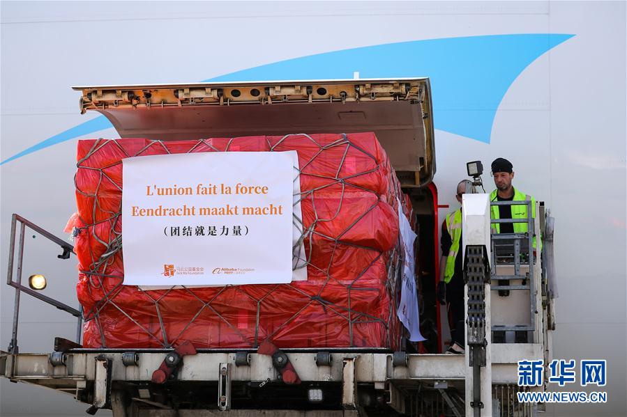 来自中国的30万只口罩当地时间16日中午运抵比利时列日机场。这是欧洲新冠肺炎疫情暴发以来,比利时首次得到大规模外来援助。这批物资由阿里巴巴公益基金会和马云公益基金会提供。 新华社记者 张铖 摄