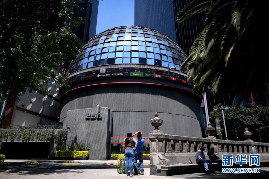 3月16日,在墨西哥首都墨西哥城,一名男子在墨西哥证券交易所外拍照。 受新冠肺炎疫情扩散和美联储降息等因素影响,3月16日拉美多国金融市场出现大幅波动。 新华社记者 辛悦卫 摄
