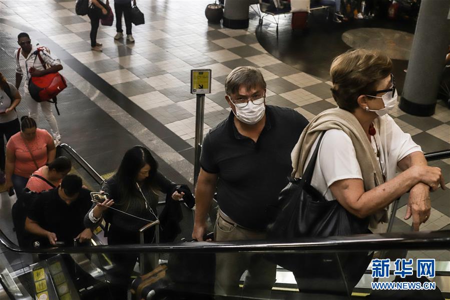 3月16日,人们在巴西圣保罗孔戈尼亚斯机场戴口罩出行。 面对巴西新冠肺炎疫情严峻的形势,很多圣保罗民众逐渐加强了防疫举措,在出入机场等人员密集、流动性大的场所时戴上了口罩。 新华社发(拉赫尔·帕特拉索 摄)
