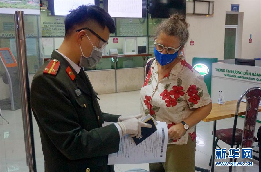 3月17日,在越南北部老街省一火车站,边检人员正在检查外国旅客的健康申报表。 根据越南卫生部消息,截至当地时间17日晚间,该国累计新冠肺炎确诊病例达到66例。 新华社/越通社