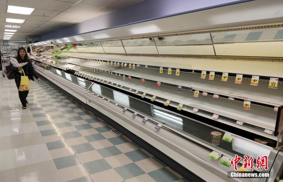 当地时间3月17日,美国旧金山湾区圣马特奥县一家超市的多种商品供不应求。美国旧金山湾区6个县当地时间16日宣布实施出行禁令,从17日开始,要求居民在接下来的三个星期内尽可能留在家中,并与他人保持一定距离。 中新社记者 刘关关 摄