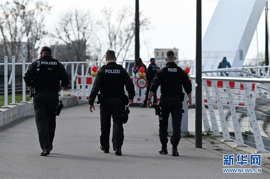 3月17日,警察在位于德国小城凯尔的德法边境“两岸桥”附近执勤。 德国疾控机构罗伯特·科赫研究所公布的最新数据显示,截至16日15时,德国累计确诊病例升至6012例,死亡13例。德国政府从16日起加强对奥地利、瑞士、法国、卢森堡和丹麦五国的边境管控。如无合理原因,将不再允许旅行进出。但货运交通和跨境工作通勤不受边控影响。 新华社发(乌尔里希·胡夫纳格尔 摄)