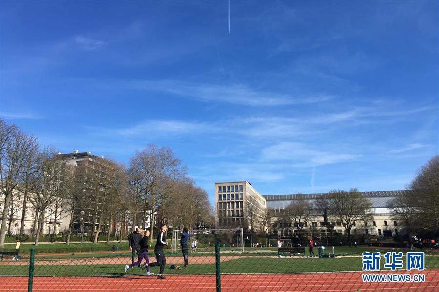 3月17日,人们在比利时布鲁塞尔五十周年纪念公园运动。 新华社记者 郑焕松 摄