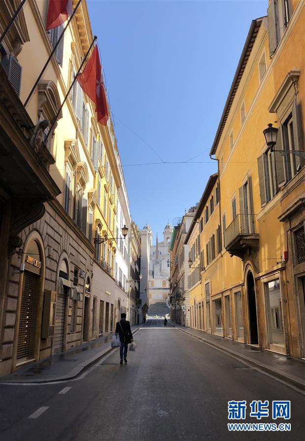 3月18日,在意大利首都罗马,一名提着购物袋的男子从街头走过。 意大利民事保护部门负责人、新冠病毒应急委员会专员博雷利18日说,截至当天18时,意大利累计新冠肺炎确诊病例升至35713例,累计死亡病例增至2978例,另有4025人治愈。 新华社发(阿尔贝托·林格利亚 摄)