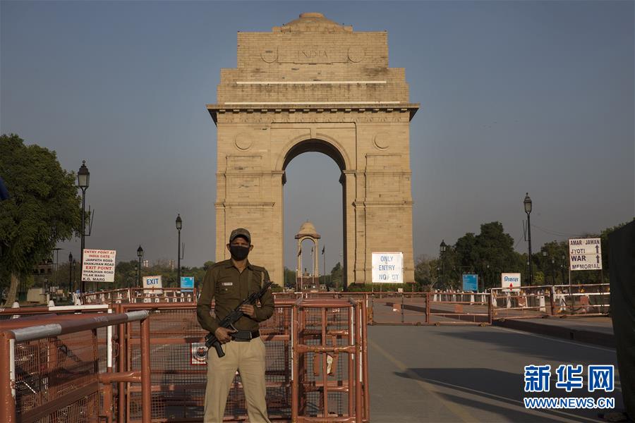 3月18日,在印度首都新德里,一名警察戴着口罩持枪站在景点印度门附近。 印度卫生部18日发布的最新数据显示,截至当天17时,该国新增14例新冠肺炎确诊病例,累计确诊病例数达151例。其中,治愈出院14例,另有3例死亡。 新华社发(贾韦德·达尔摄)