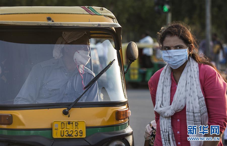 3月18日,在印度首都新德里,人们戴着口罩出行。 印度卫生部18日发布的最新数据显示,截至当天17时,该国新增14例新冠肺炎确诊病例,累计确诊病例数达151例。其中,治愈出院14例,另有3例死亡。 新华社发(贾韦德·达尔摄)