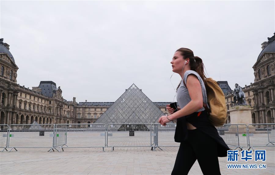 3月18日,在法国巴黎,一名晨练的女子经过卢浮宫。 3月17日12时,随着法国各项疫情防范措施升级,全国进入抗击新冠肺炎疫情的“战争状态”。法国内政部规定,自17日12时起,居民外出必须证明其出行的必要性,如无法远程办公需前往工作地点、需出门采购食品和生活必需品、因照顾弱势群体或看护儿童而外出、在家附近独自锻炼或遛狗等,违者将面临38欧元至135欧元的罚款。 新华社记者 高静 摄