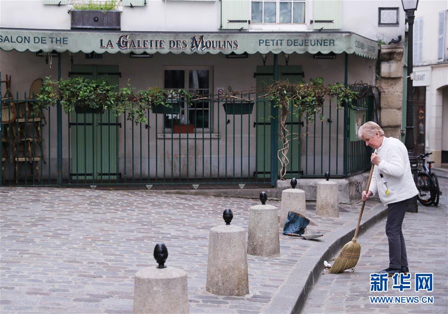 3月18日,在法国巴黎蒙马特高地,一名妇人清理店前的垃圾。 3月17日12时,随着法国各项疫情防范措施升级,全国进入抗击新冠肺炎疫情的“战争状态”。法国内政部规定,自17日12时起,居民外出必须证明其出行的必要性,如无法远程办公需前往工作地点、需出门采购食品和生活必需品、因照顾弱势群体或看护儿童而外出、在家附近独自锻炼或遛狗等,违者将面临38欧元至135欧元的罚款。 新华社记者 高静 摄