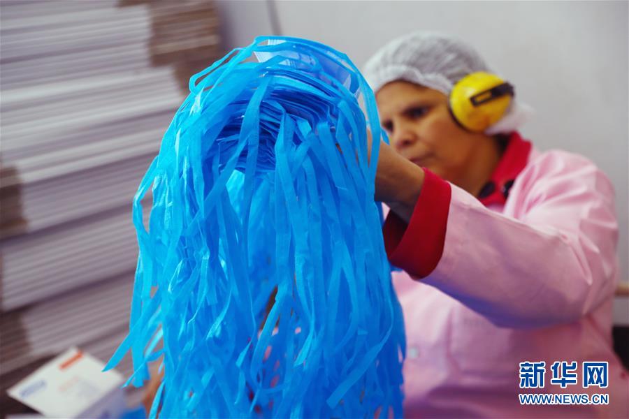 3月19日,在埃及米努夫省,工人在口罩工厂中工作。新华社发(艾哈迈德·戈马摄)