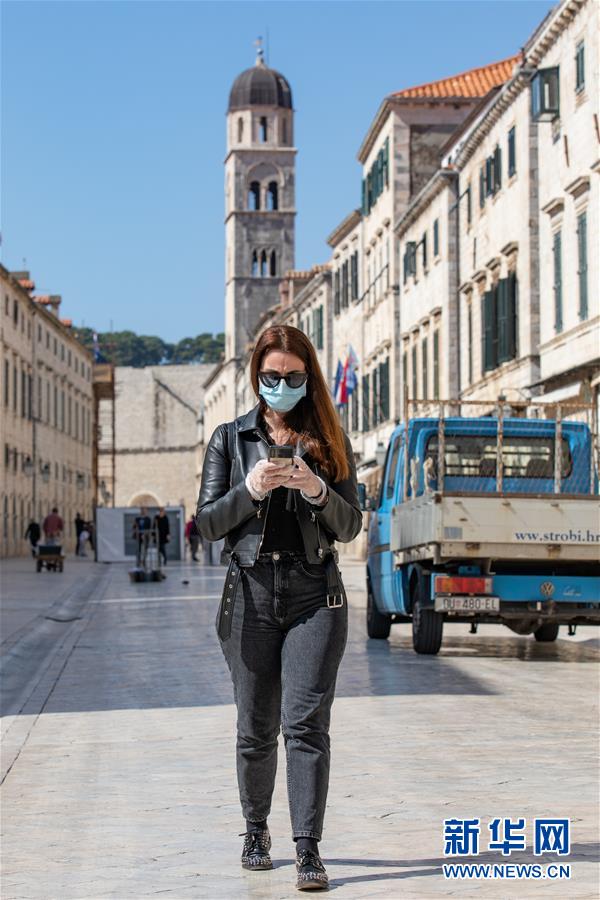 3月19日,在克罗地亚杜布罗夫尼克,一名戴口罩的女子行走在旧城内。新华社发(格尔戈·耶拉维奇摄)