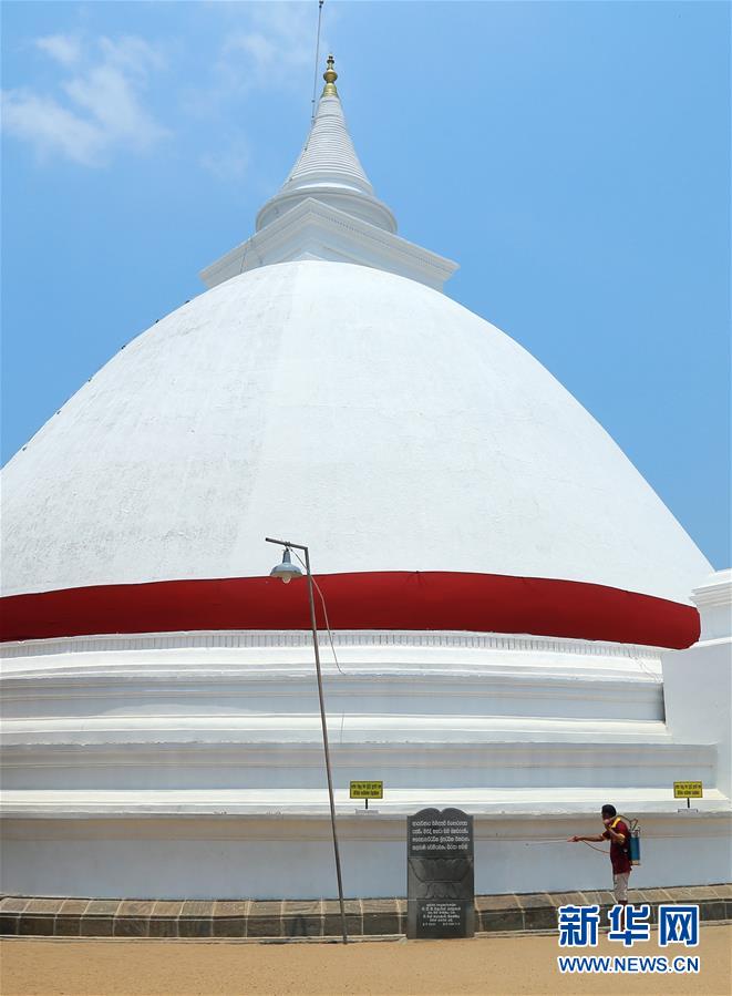 3月23日,在斯里兰卡科伦坡附近的克拉尼亚,工作人员在克拉尼亚大佛寺进行消毒工作。 为遏制新冠疫情发展,斯里兰卡从20日开始实行宵禁。 新华社发(阿吉特·佩雷拉摄)