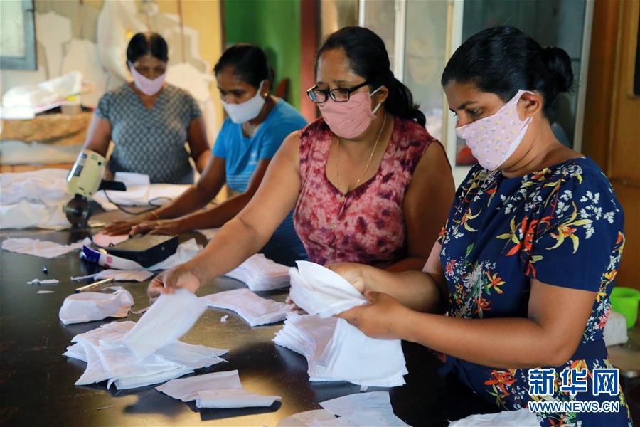 3月23日,在斯里兰卡卡杜韦勒,妇女在家中缝制口罩。 为遏制新冠疫情发展,斯里兰卡从20日开始实行宵禁。 新华社发(阿吉特·佩雷拉摄)