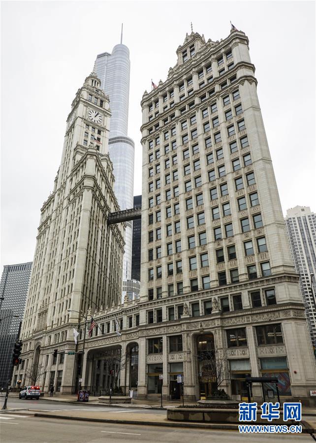 3月23日,在美国伊利诺伊州芝加哥,密歇根大道上空空荡荡。 美国伊利诺伊州州长普里茨克20日宣布“居家令”,要求本州1200多万民众尽量居家,以应对新冠肺炎疫情。这一行政令于21日生效,持续至4月7日。 新华社发(乔尔·莱纳摄)