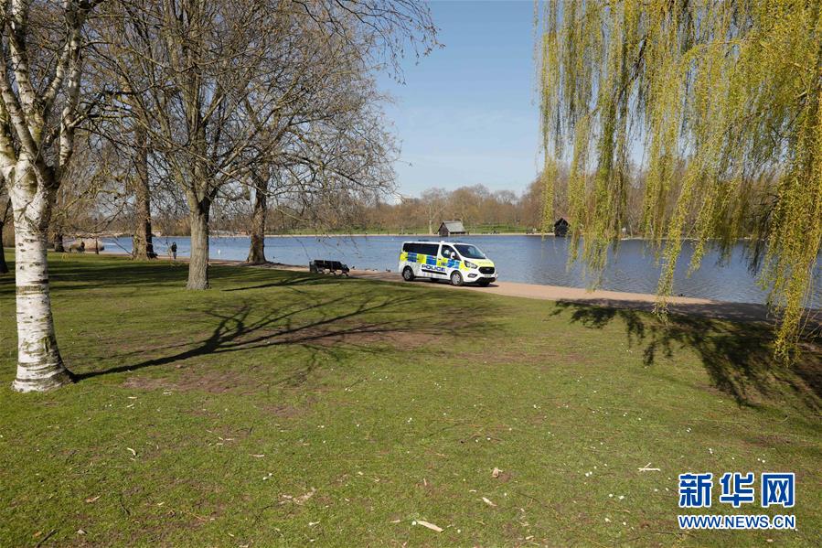 3月24日,在英国伦敦,警察驾驶警车在海德公园内巡逻。 英国首相约翰逊23日下午取消了每日例行的疫情通报会,改为晚间发布电视讲话。他在电视讲话中说,从当晚开始英国民众必须停止一切不必要的外出。他明确表示,能允许的外出仅限于以下四种情况:购买生活必需品、寻求医疗帮助、仅限一种户外锻炼方式、“绝对必要”的上下班。 新华社发(蒂姆·爱尔兰摄)