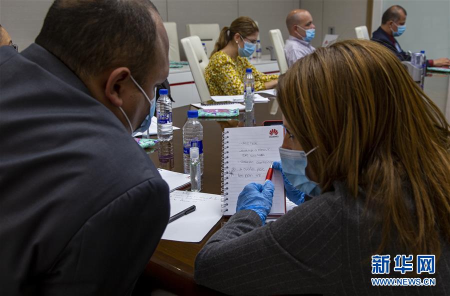 这是3月23日晚在哥斯达黎加圣何塞拍摄的视频工作会议现场。新华社发(达托摄)