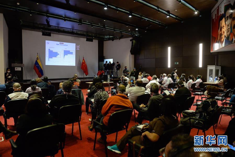 这是3月23日晚在委内瑞拉加拉加斯拍摄的视频工作会议现场。新华社发(萨尔戈多摄)