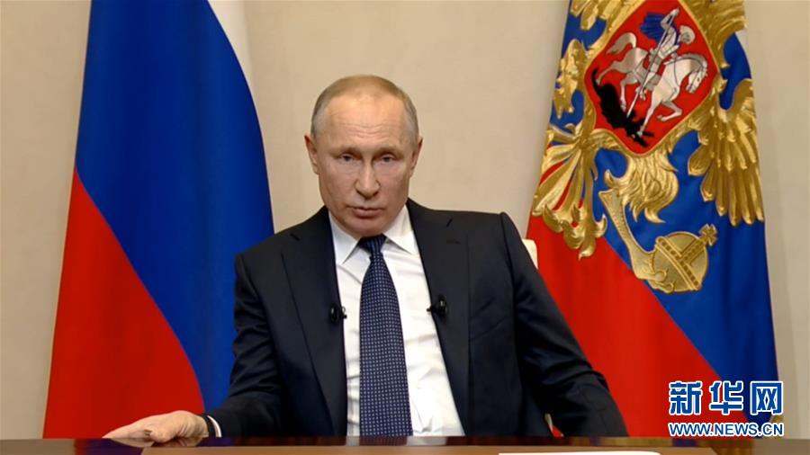 这张3月25日的视频截图显示,俄总统普京在莫斯科发表电视讲话。 新华社记者 白雪骐 摄