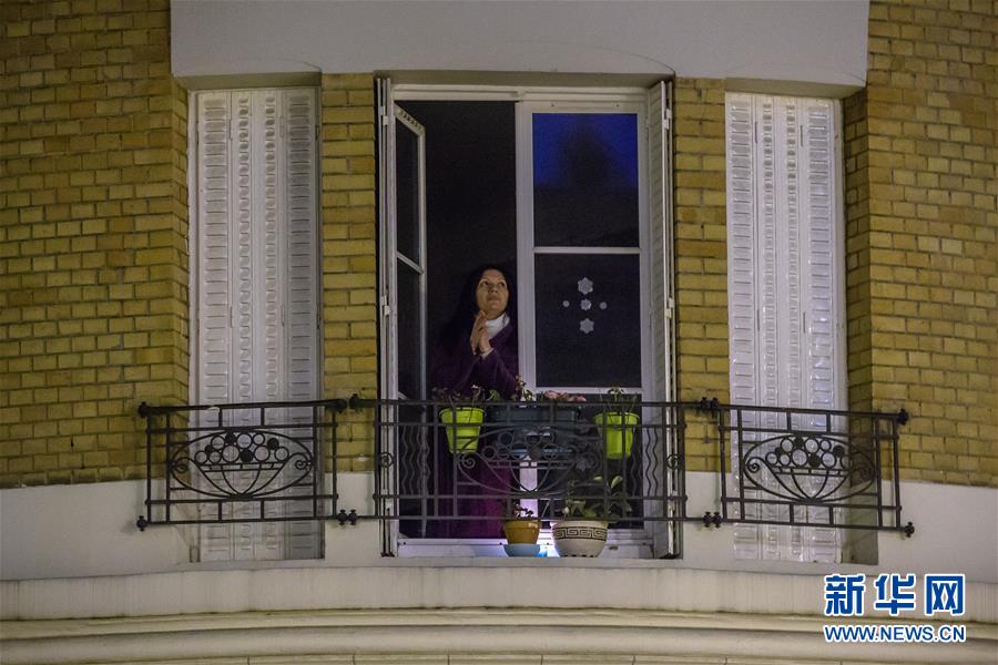 3月25日,在法国巴黎,一名女子在窗前放置了一支蜡烛,并为医护人员鼓掌。 25日晚,许多法国民众在自家窗台点上一支蜡烛,以表达抗击疫情、团结一心的期望和心愿。 新华社发(奥雷利安·莫里萨尔摄)