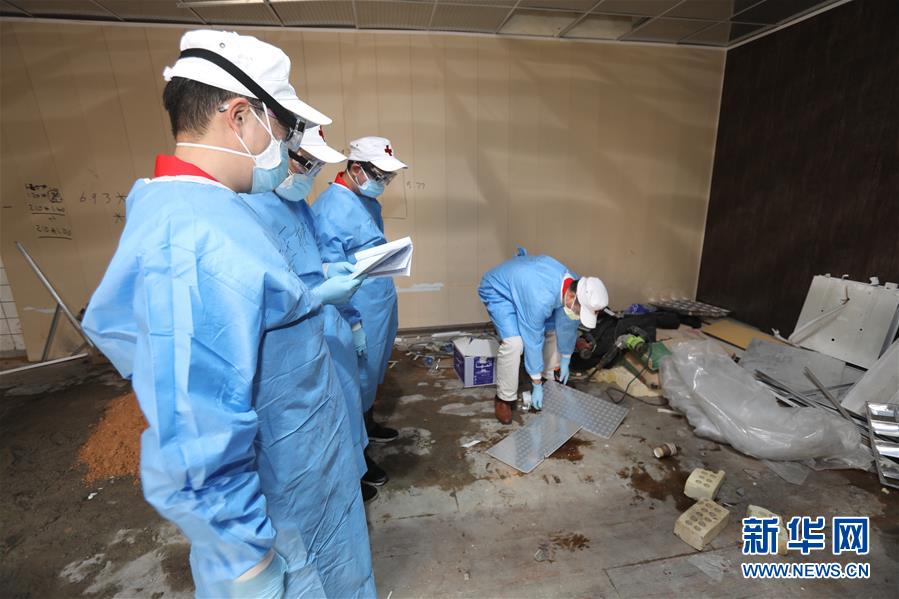 3月24日,在伊拉克巴格达,中国专家组成员帮助新冠肺炎定点收治医院新冠病毒康复中心改建CT室。 新华社发
