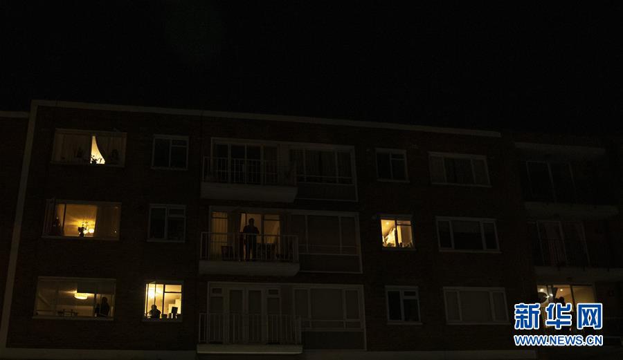 3月26日,在英国伦敦,人们站在自家阳台或窗前向医护人员表达敬意。 当晚八时,英国民众来到自家窗口和阳台,用掌声和欢呼声向奋战在抗击新冠肺炎疫情一线的医护人员表达敬意。 新华社记者 韩岩 摄