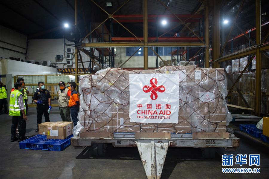 3月26日,中国援助印尼的首批抗疫物资停放在雅加达苏加诺哈达机场仓库。 当地时间3月26日晚,中国政府援助印尼用于抗击新冠肺炎疫情的首批医疗物资运抵雅加达。 新华社记者 杜宇 摄