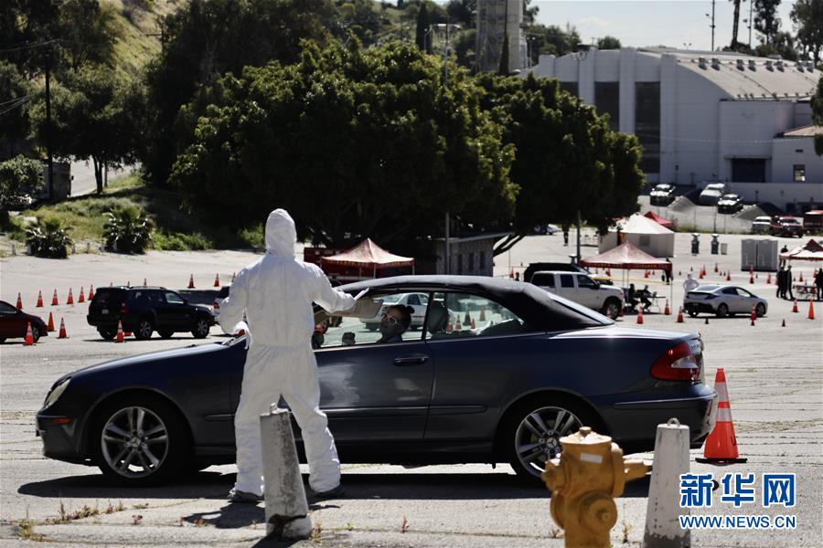 洛杉矶民众前往新型冠状病毒免下车检测站检测