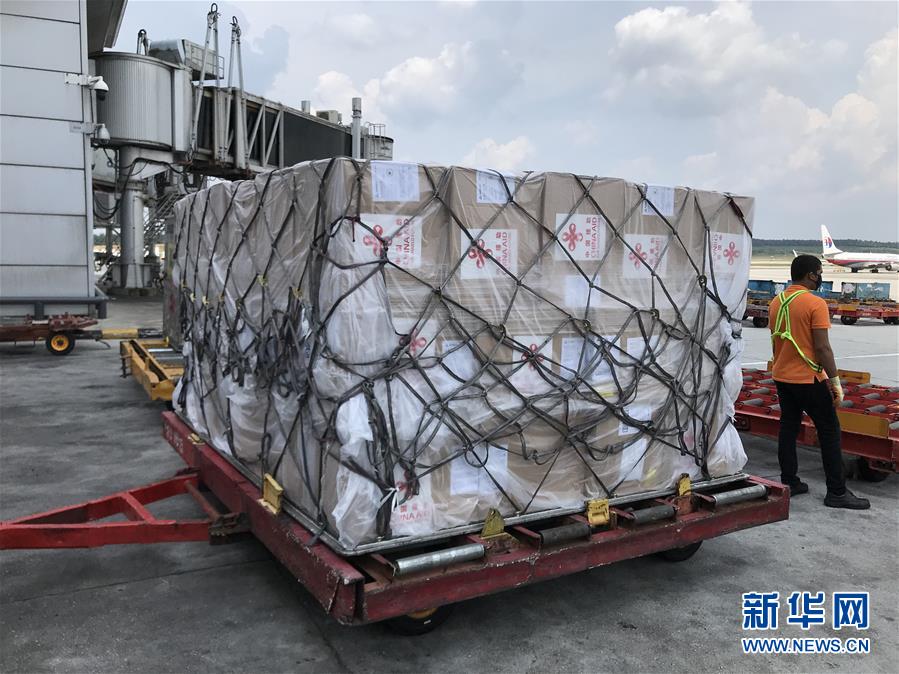 3月28日,中国政府援助马来西亚抗疫物资抵达马来西亚吉隆坡国际机场。 新华社发(中国驻马来西亚大使馆供图)