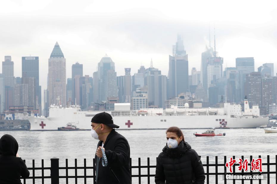 当地时间3月30日,美军医疗舰“安慰号”航行抵达纽约曼哈顿。当日,“安慰号”抵达位于纽约曼哈顿的90号码头。该船有1000张医疗床位,配备50个急救室,12个手术室,将在纽约接收非新冠肺炎患者。中新社记者 廖攀 摄