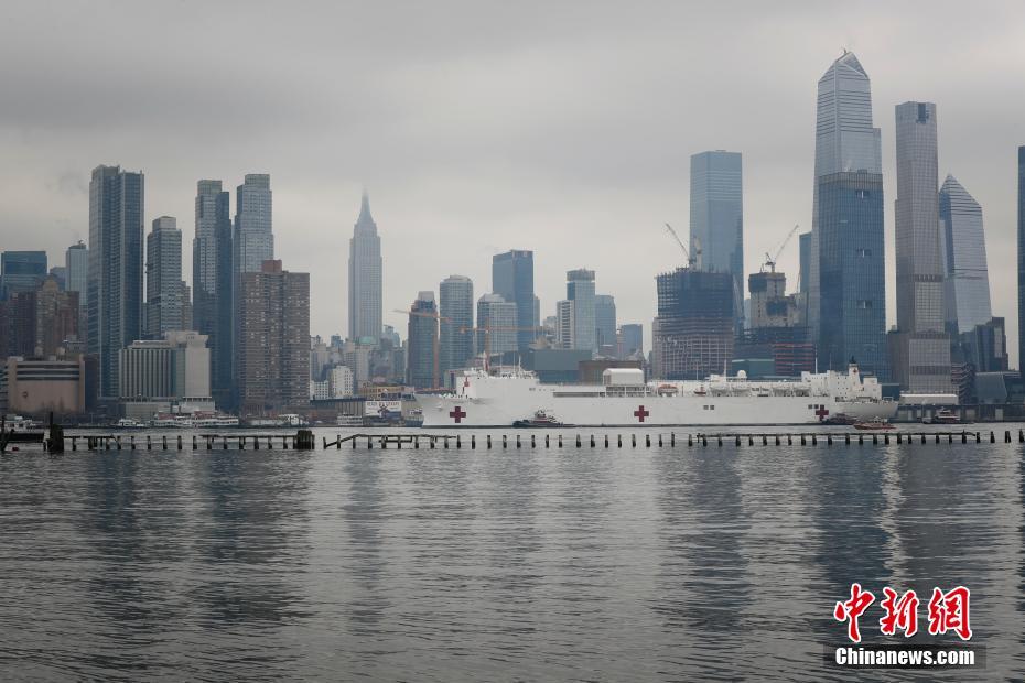 当地时间3月30日,美军医疗舰“安慰号”航行经过纽约曼哈顿中城。当日,“安慰号”抵达位于纽约曼哈顿的90号码头。该船有1000张医疗床位,配备50个急救室,12个手术室,将在纽约接收非新冠肺炎患者。中新社记者 廖攀 摄