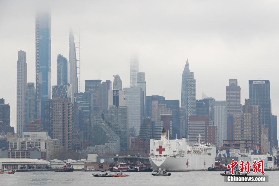 当地时间3月30日,美军医疗舰“安慰号”航行抵达纽约曼哈顿90号码头。该船有1000张医疗床位,配备50个急救室,12个手术室,将在纽约接收非新冠肺炎患者。中新社记者 廖攀 摄