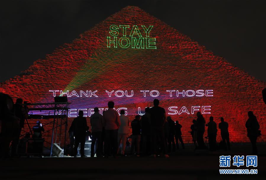 埃及点亮金字塔为抗疫加油