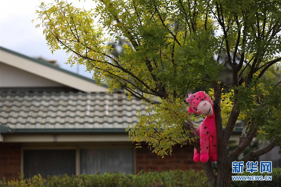 这是3月30日在澳大利亚堪培拉拍摄的摆在一户人家房前树上的玩偶。 近日,澳大利亚一些社区举行“偶遇小熊(玩偶)”接力活动。居民在住宅窗前、阳台、花园和树上等位置,摆放各式玩偶,以此鼓励疫情下的人们,特别是孩子们,使他们在“偶遇”玩偶时获得一份惊喜和好心情。 新华社发(储晨摄)