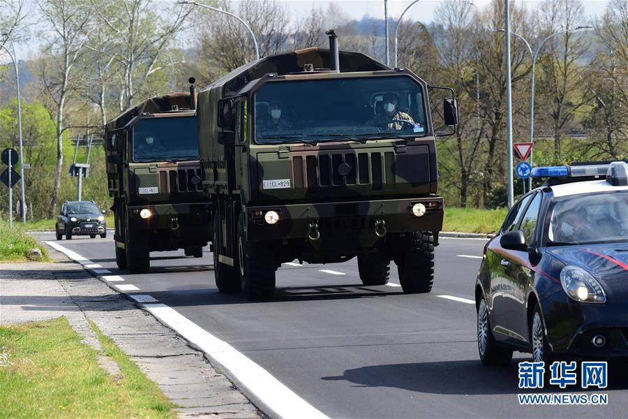 3月31日,运送意大利伦巴第大区新冠肺炎患者遗体的军用卡车抵达博洛尼亚。新华社发(詹尼·斯基基摄)