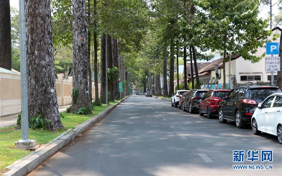 这是4月1日在越南南部胡志明市拍摄的一处空荡荡的街道。 越南政府总理阮春福4月1日签发文件,宣布新冠肺炎疫情已成为全国性疫情。 新华社/越通社