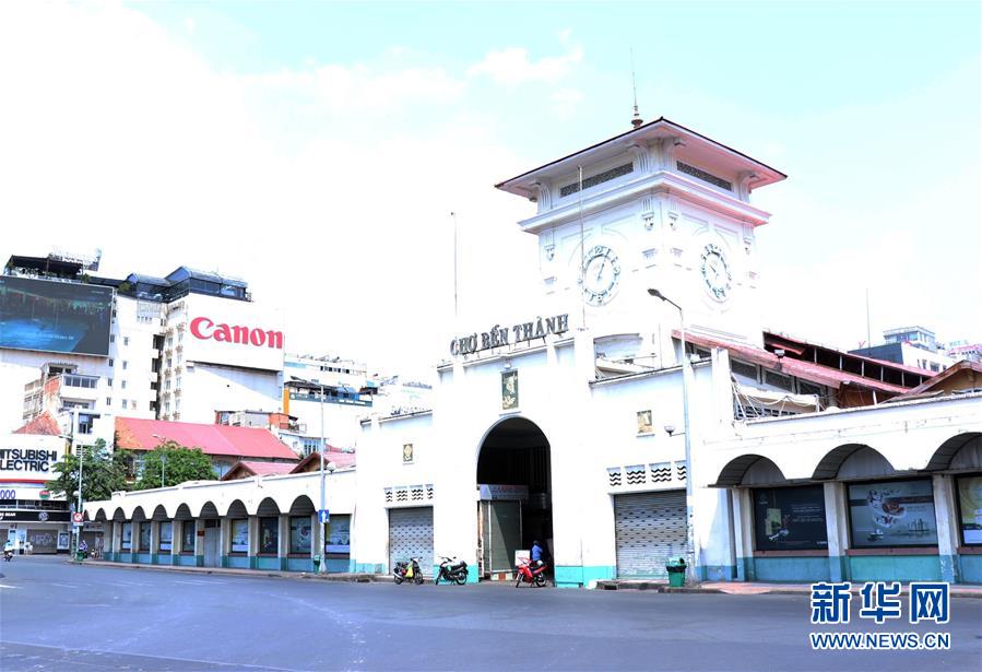 4月1日,越南南部胡志明市一处市场前一片冷清。 越南政府总理阮春福4月1日签发文件,宣布新冠肺炎疫情已成为全国性疫情。 新华社/越通社