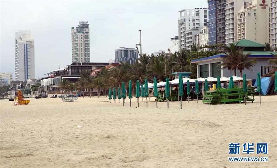 4月1日,在越南中部岘港市一处海滩,餐厅和商店都已关闭。 越南政府总理阮春福4月1日签发文件,宣布新冠肺炎疫情已成为全国性疫情。 新华社/越通社