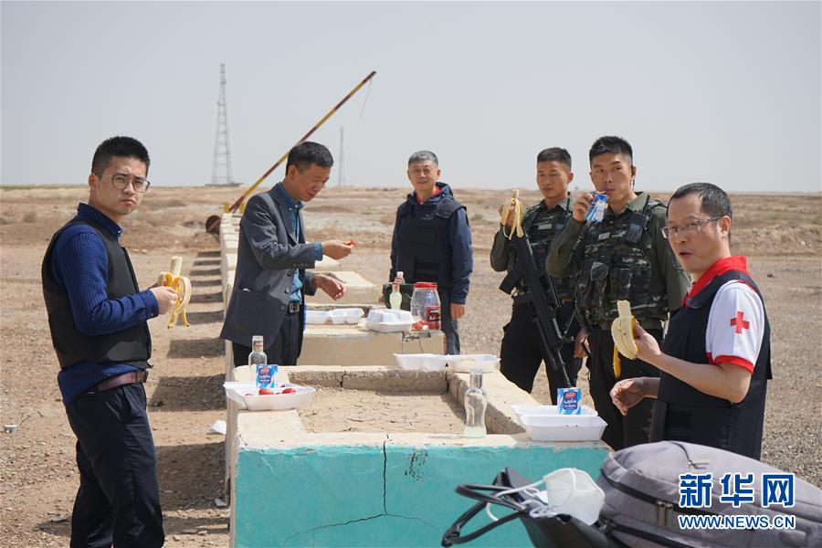 3月20日,在伊拉克南部,专家组成员陈淮(右一)、韩孟杰(左三)在结束南部抗疫考察指导后短暂休息。新华社发