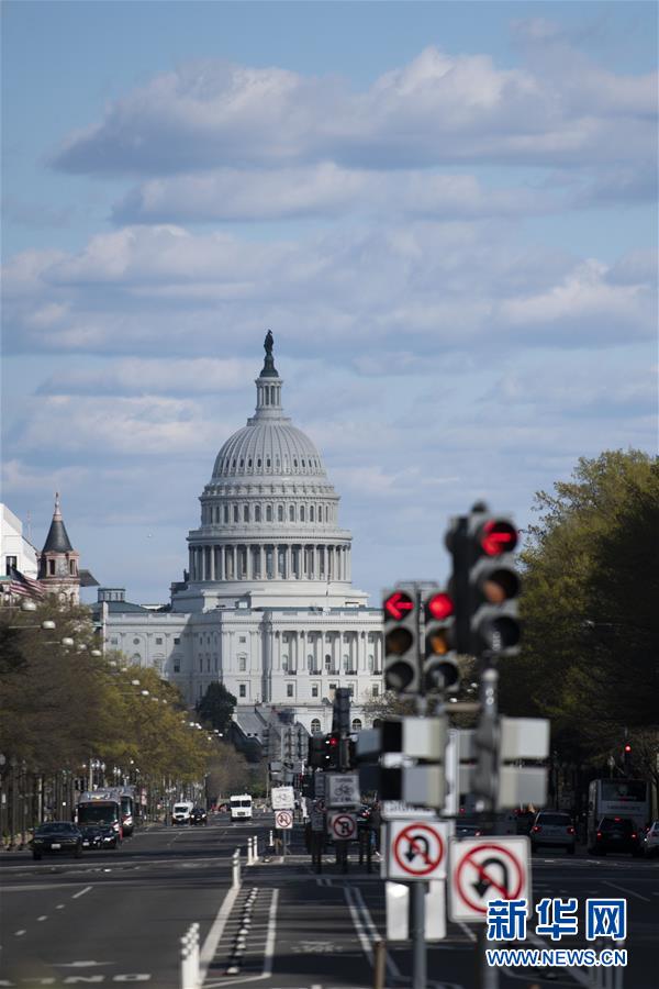 4月2日,在美国首都华盛顿,国会大厦附近行人稀少。