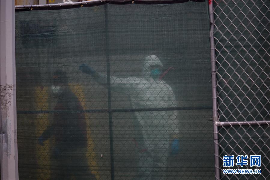 4月2日,医护人员在美国纽约布鲁克林一家医院外工作。 新华社发 (郭克摄)