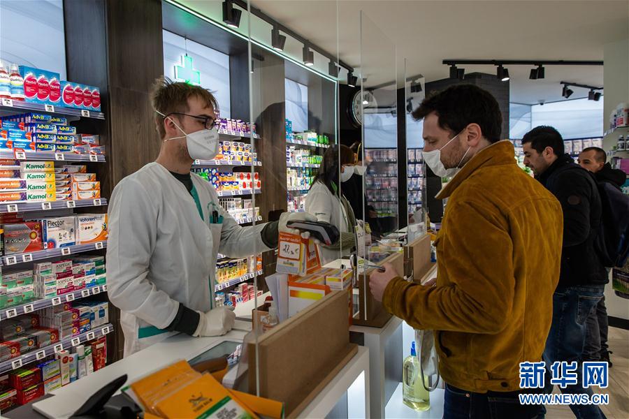 4月2日,在法国巴黎一家药店,收银台安装了防护板。 法国公共卫生部门2日公布的数据显示,法国累计新冠肺炎确诊病例升至59105例,较前一日增加2116例。 新华社发(奥雷利安·莫里萨尔摄)