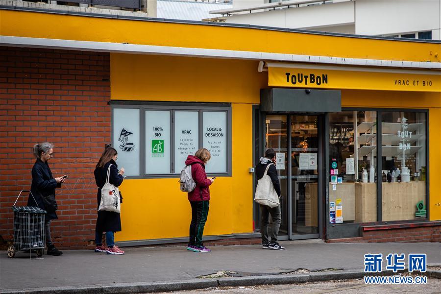 4月2日,在法国巴黎,人们在一家有机食品商店外排队。 法国公共卫生部门2日公布的数据显示,法国累计新冠肺炎确诊病例升至59105例,较前一日增加2116例。 新华社发(奥雷利安·莫里萨尔摄)