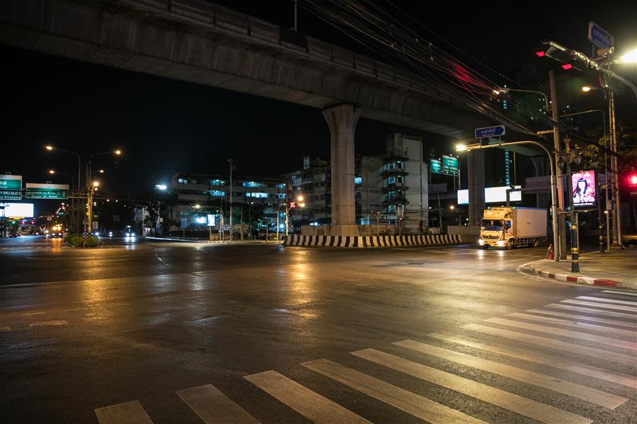 4月3日,一辆货车在宵禁后行驶在曼谷一条街道上。 泰国总理巴育4月2日宣布于4月3日起在全国范围内实施宵禁,宵禁时间为晚10点至次日凌晨4点。宵禁期间除必要出行的人员外,其他民众一律不得离开住所,违禁者可能面临最高2年的监禁。 新华社记者 张可任 摄