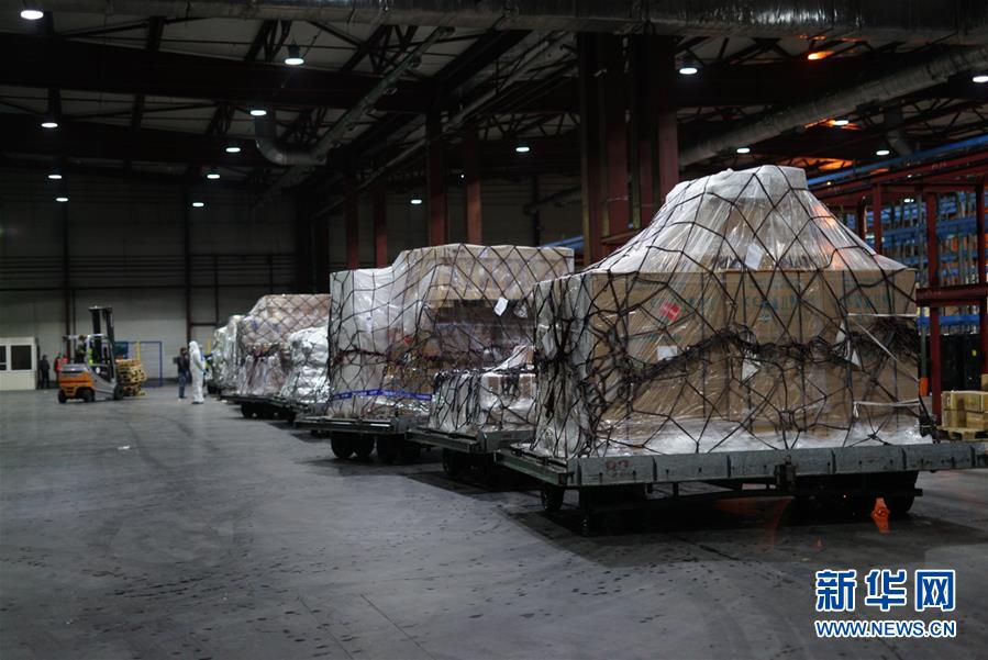 这是4月2日在哈萨克斯坦阿拉木图国际机场仓库拍摄的中国政府援哈抗疫物资。 当日,中国政府援助哈萨克斯坦的一批抗疫物资抵达阿拉木图,其中包括红外线体温计、检测试剂、防护服、护目镜、外科手套、鞋套等。 新华社发(哈萨克斯坦《斜体字报》供图)