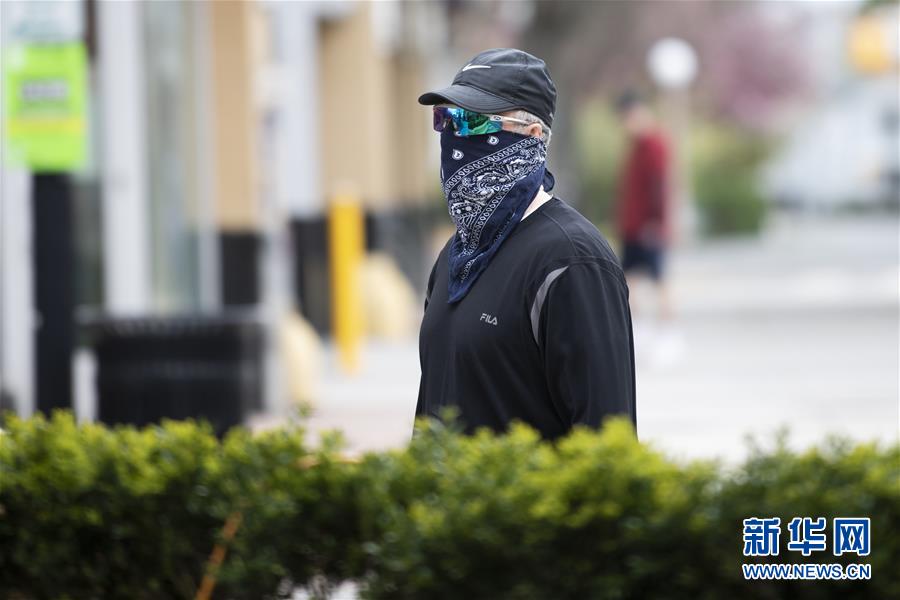 4月4日,在美国弗吉尼亚州阿灵顿,一名男子戴着墨镜和围巾走在街头。新华社记者 刘杰 摄