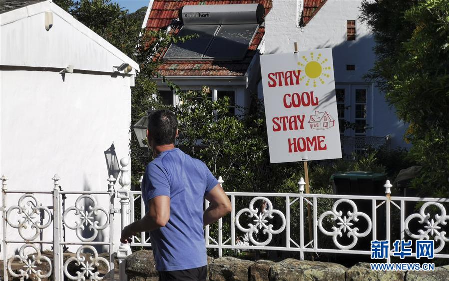 这是4月4日在澳大利亚悉尼费尔莱特社区拍摄的鼓励人们乐观抗疫的标语牌。新华社记者 白雪飞 摄